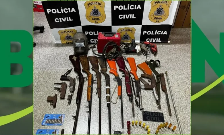Uma operação da Polícia Civil desarticulou uma fábrica clandestina de armas de fogo no povoado de Itiúba, zona rural de Jaguaquara, na sexta-feira (07). A ação, realizada pela Delegacia Territorial da cidade, apreendeu armas em diferentes estágios de fabricação, maquinários e ferramentas utilizados na montagem dos artefatos.