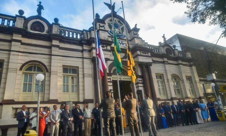 Em frente ao Paço Municipal, na Praça Senador Temístocles, autoridades e a sociedade civil participaram de um ato cívico. Após o momento de reflexão com Janeide Vila Verde, os guardas civis municipais conduziram as bandeiras aos mastros. Participaram do momento o prefeito Ednaldo Ribeiro, o presidente da Câmara de Vereadores Euricles Neto e o Deputado Estadual Niltinho, que fizeram o ato de hasteamento das bandeiras.