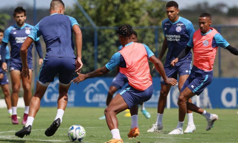 O Bahia deu continuidade a preparação para o jogo contra o Grêmio. Na manhã desta quarta-feira (28), o elenco tricolor trabalhou dividido por setores. Em outro momento, Renato Paiva comandou um treino tático para esboçar o provável time titular para encarar os gaúchos.