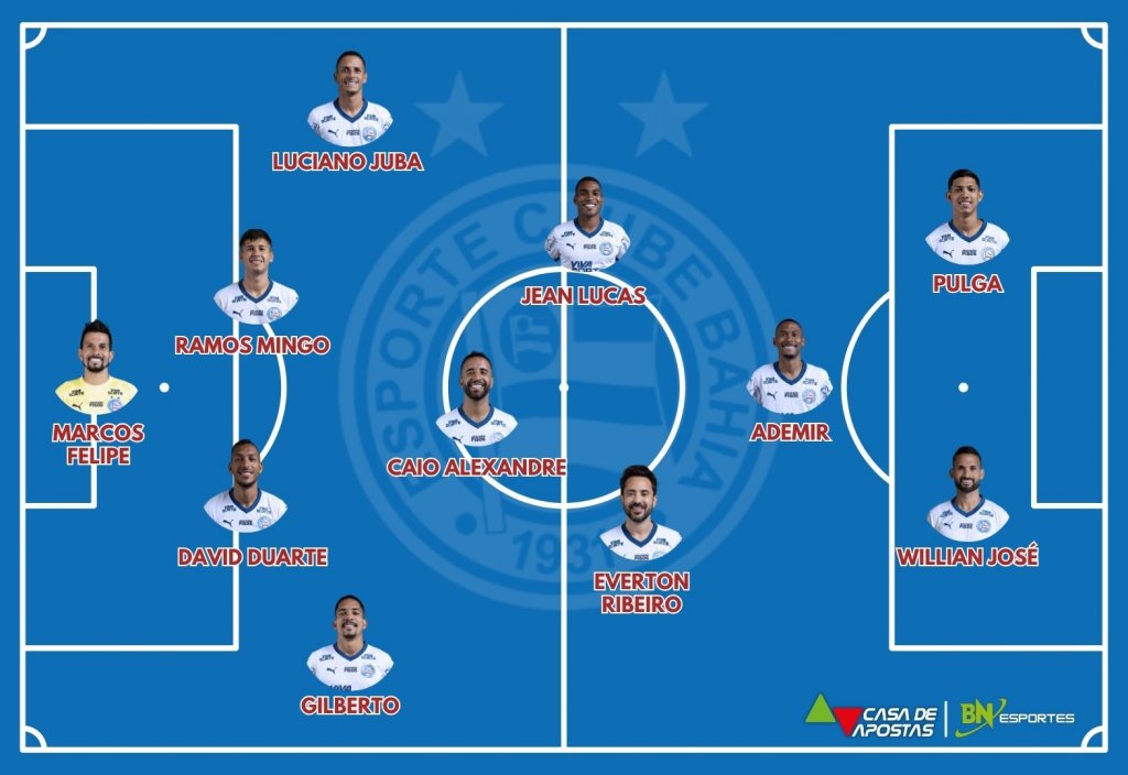Bahia: Marcos Felipe, Gilberto, Santiago Ramos, David Duarte, Luciano Juba, Caio Alexandre, Éverton Ribeiro, Jean Lucas, Ademir, Willian José, Erick Pulga. Técnico: Rogério Ceni.