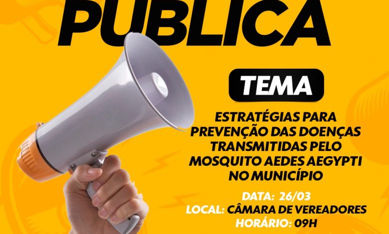 A Câmara de Vereadores de Cruz das Almas vai realizar uma Audiência Pública nesta terça-feira, 26, às 09h, com o intuito de discutir estratégias para prevenção das doenças transmitidas pelo mosquito Aedes aegypti no município. Proposta através do mandato do vereador Paulinho Policial, a audiência destaca a importância do tema neste momento em que os casos de dengue têm aumentado em todo o Brasil.