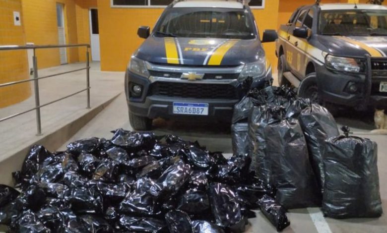Os carros foram parados e direcionados para o posto da corporação e, durante a vistoria, foram encontrados diversos pacotes de maconha no interior do Fiat Strada, totalizando cerca de 109 kg. As embalagens estavam envoltas em plástico preto.
