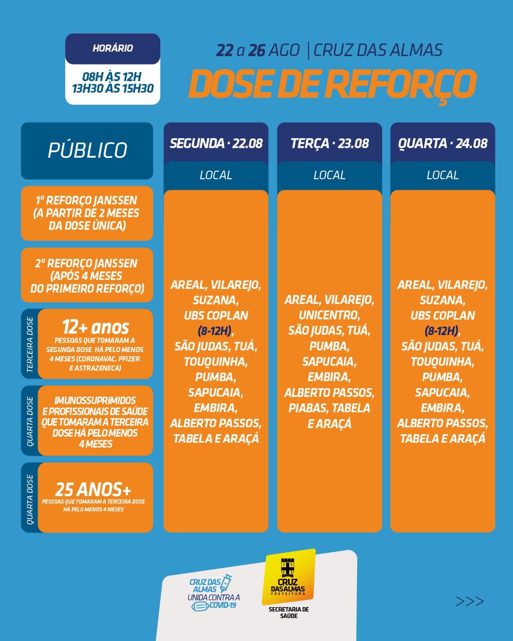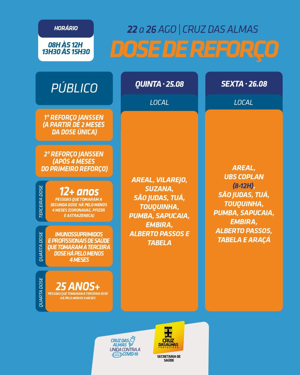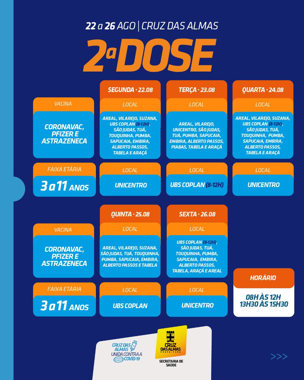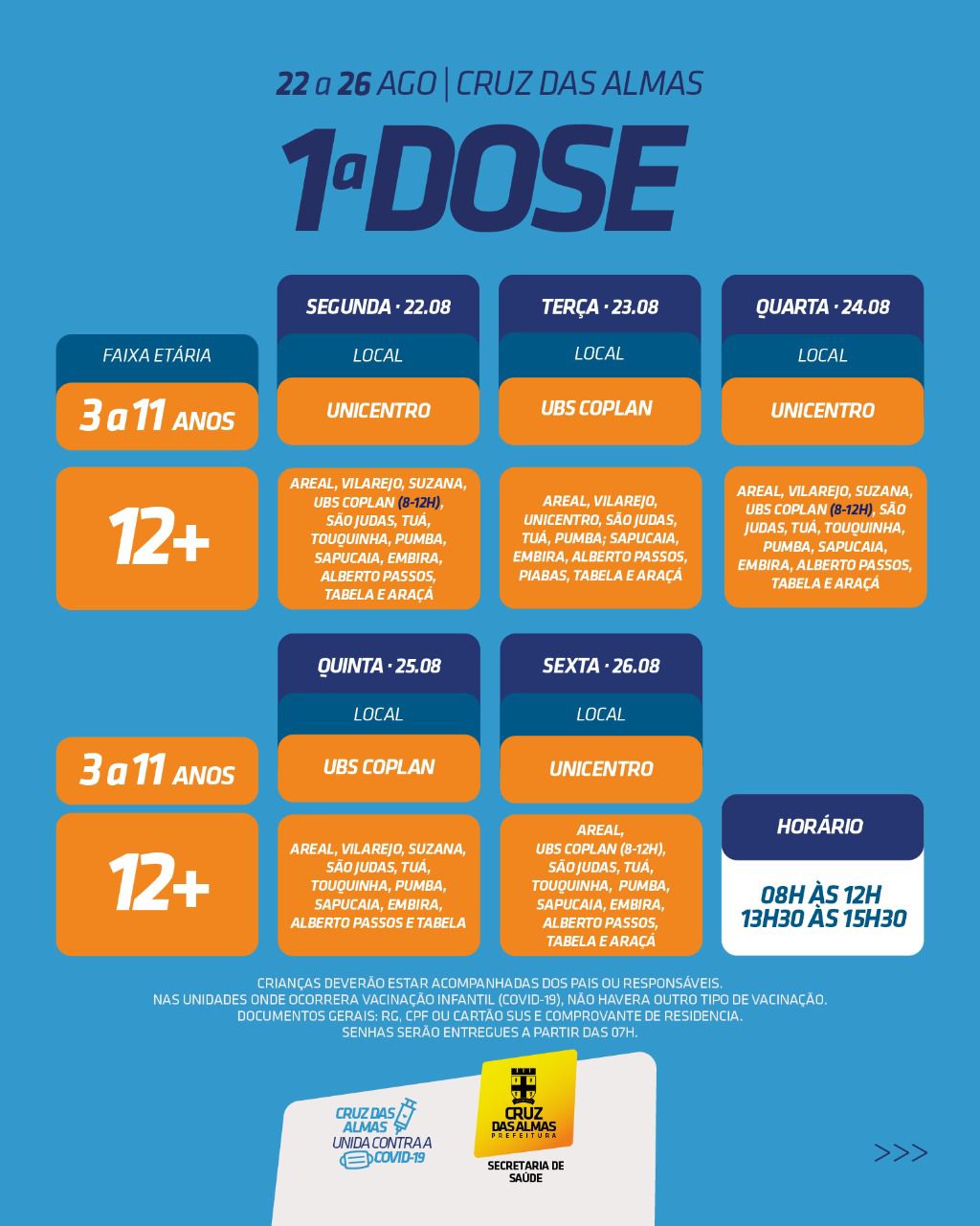 Início/Cruz das Almas/Confira cronograma de vacinação 22 a 26 – Cruz das Almas – Bahia BahiaBrasilCovid-19Cruz das AlmasFeatured Confira cronograma de vacinação 22 a 26 – Cruz das Almas – Bahia revista ago 22, 2022 236 Reprodução Internet