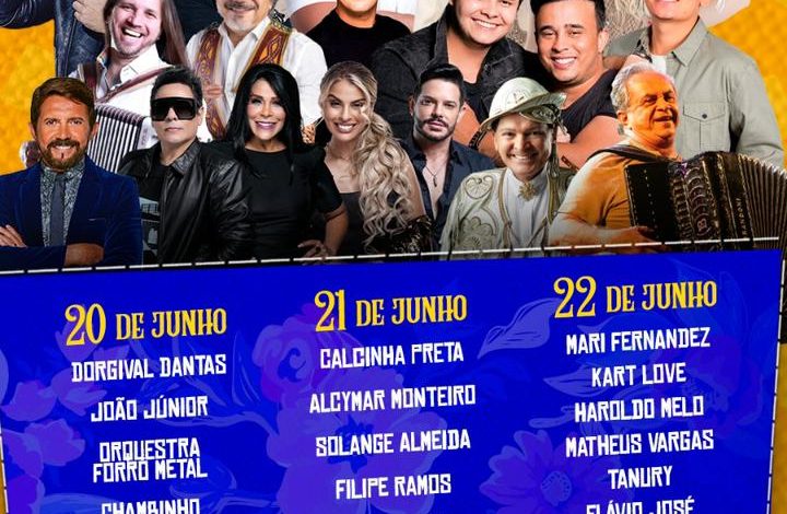 As atrações confirmadas incluem Wesley Safadão, Mari Fernandez, João Gomes, Solange Almeida, Santanna O Cantador, Flávio José, Adelmário Coelho, Calcinha Preta, Tayrone, Dorgival Dantas, Zé Neto e Cristiano, Matheus e Kauan, Kevi Jonny e Alcymar Monteiro.