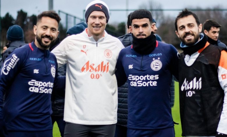 Já na Inglaterra, o Bahia deu início a pré-temporada no CT do Manchester City. Além dos trabalhos no campo, ainda deu tempo dos jogadores do Esquadrão terem um momento de fãs e tietarem os craques do clube inglês.