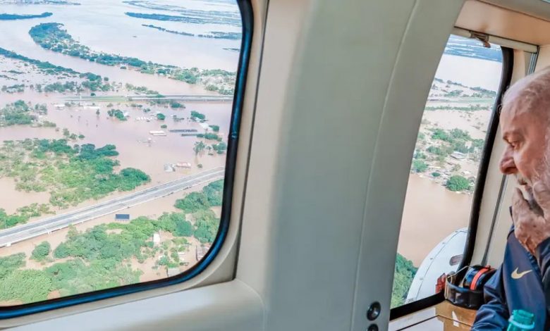 Lula e comitiva sobrevoam áreas atingidas por enchentes no Rio Grande do Sul