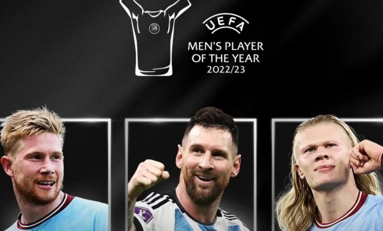 A Uefa anunciou a lista, nesta quinta-feira (17), dos três finalistas para ganhar o prêmio de Melhor Jogador do Ano da entidade na temporada 2022/23. O belga Kevin De Bruyne e o norueguês Erling Haaland, do Manchester City, e o argentino Lionel Messi, atualmente no Inter Miami, foram os mais votados. A grande ausência foi o brasileiro Vinícius Jr. que não ficou nem entre os 10 melhores jogadores da temporada passada.