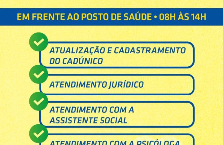 Atendimentos jurídicos, de assistência social, psicológico, além do Gabinete Itinerante da Secretária, serão disponibilizados aos moradores da localidade.