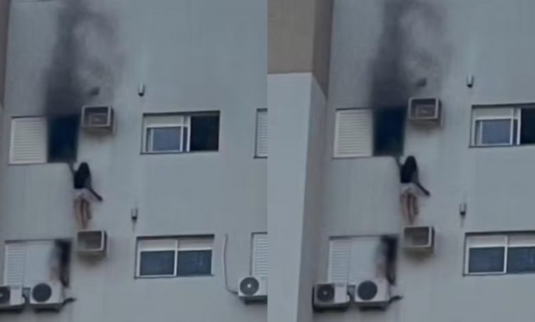 Segundo informações do Corpo de Bombeiros, a mulher se pendurou em um suporte de ar-condicionado na parte externa do prédio para tentar resgatar a mãe e uma criança que estavam presas no imóvel tomado pelo fogo. Imagens compartilhadas nas redes sociais mostram o momento da ação.