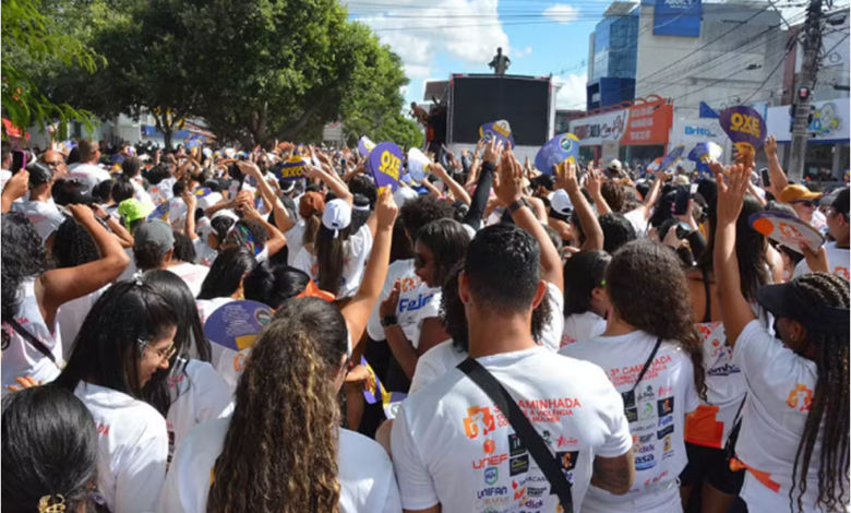 Multidão participa de caminhada em Feira de Santana para pedir o fim da violência contra a mulher