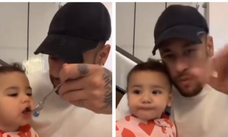 Nas imagens, é possível ver Neymar alimentando a pequena, enquanto Mavie esbanja fofura e simpatia. Diversos internautas ficaram maravilhados com o momento compartilhado.