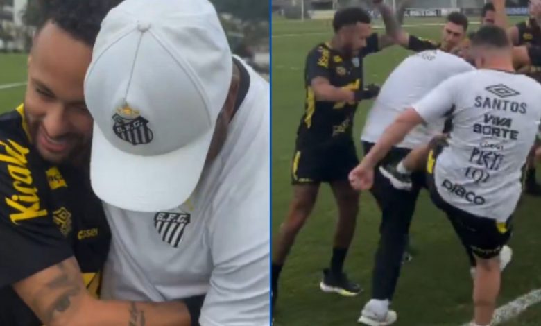 Apenas um dia depois da bolada recebida por Mavie, Neymar decidiu “vingar” sua filha na tarde desta quinta-feira (16) e preparou um “corredor polonês” para o segurança que acertou a bola na pequena. A criança, que recém completou dois anos, costuma acompanhar o jogador em todos seus jogos na Vila Belmiro, estádio do Santos.