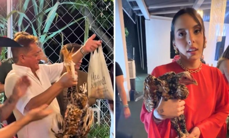 Em outras imagens divulgadas, as filhas de Zé Felipe e Virginia, Maria Alice e Maria Flor, aparecem no chão, fazendo carinho e brincando com a galinha. Até mesmo a própria cantora Ana Castela pegou o bicho no colo e afirmou: “Decidi cuidar, vou soltar aqui na festa porque ela é convidada”, brincou a boiadeira.