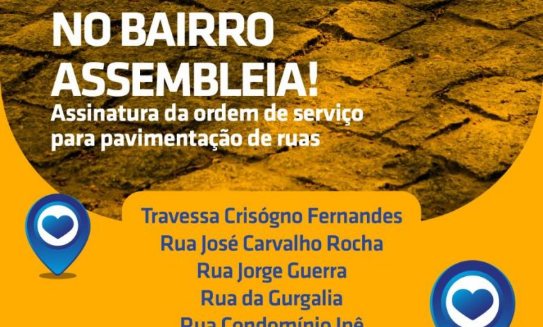 Ordem de serviço para pavimentação de ruas no bairro da Assembleia será assinada nesta terça-feira (28)