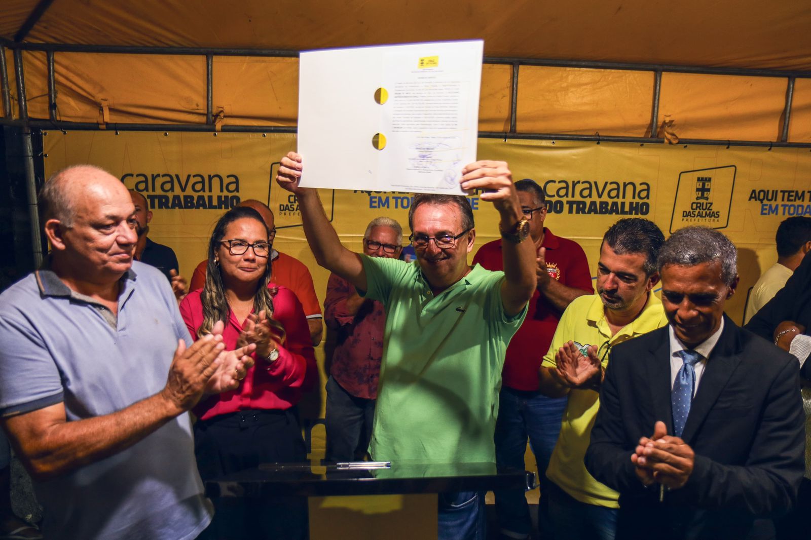 O prefeito de Cruz das Almas, Ednaldo Ribeiro assinou ordem de serviço para início da obra de pavimentação de nove ruas no bairro Chapadinha, na noite desta quarta-feira (25). O ato aconteceu no local onde será realizado a obra, com a presença dos moradores.