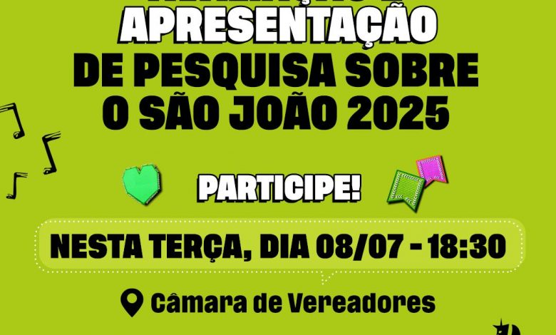 Conduzida pelo Instituto IPAP, a pesquisa coletou informações sobre a experiência do público durante o São João de Cruz, reunindo dados oficiais sobre o evento, opiniões e sugestões para aprimorar as próximas edições. Além disso, na oportunidade, serão apresentados números sobre o retorno econômico dos investimentos nos festejos deste ano.
