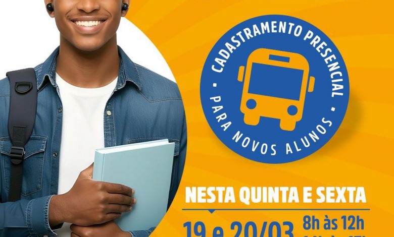 A Prefeitura de Cruz, por meio da Secretaria Municipal de Educação, realiza inscrições para o transporte escolar intermunicipal gratuito destinado a novos estudantes do ensino técnico e superior matriculados na Universidade Federal do Recôncavo da Bahia (UFRB), no Instituto Federal Baiano (IF Baiano) e no Centro Universitário Maria Milza (UNIMAM).
