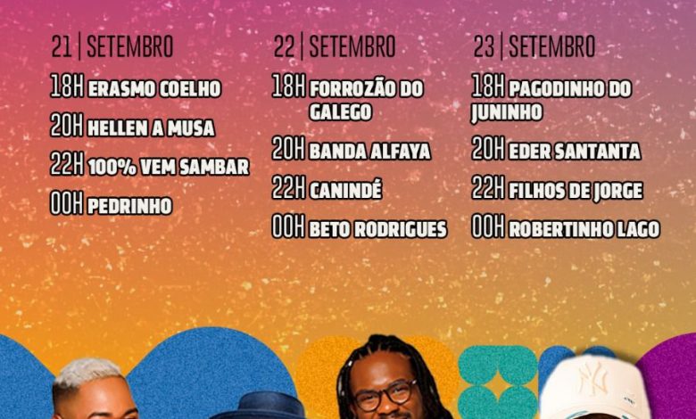As apresentações desse ano vão contar com shows de Canindé, Beto Rodrigues, Filhos de Jorge, Robertinho Lago, Pedrinho, entre outras atrações que vão animar as noites na Praça Senador Temístocles, a partir das 18 horas.