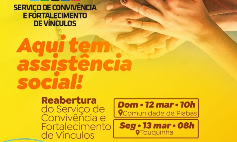 A Prefeitura de Cruz das Almas, através da Secretaria do Trabalho e Assistência Social, reabre duas unidades do Serviço de Convivência e Fortalecimento de Vínculos nas comunidades de Piabas e da Touquinha.
