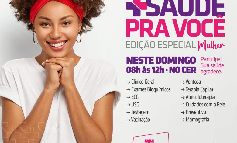 Fazendo parte de umas das ações do Março Mulher, a Prefeitura de Cruz das Almas, através das Secretarias de Saúde e Políticas Especiais realiza neste domingo (12), das 8h às 12h, no CER – Centro de Reabilitação, que fica localizado onde funcionava o IPER, o projeto Mais Saúde Pra Você especial para as mulheres.