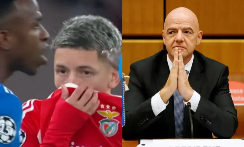Infantino ainda parabenizou Letexier, que ao receber a denúncia de Vini Jr. imediatamente paralisou a partida e iniciou o protocolo antirracismo estabelecido pela Fifa. Após revisão pelo árbitro de vídeo, Prestianni não foi punido porque cobriu a boca com a camiseta quando se dirigiu a Vinicius, impedindo que o VAR fizesse algum tipo de leitura labial.