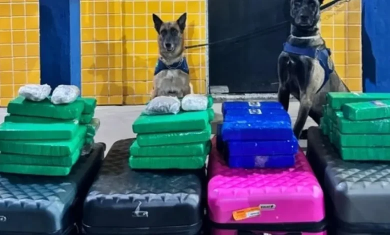 Os agentes fiscalizavam na altura do km 800 da BR 242 quando abordaram um ônibus. Na vistoria, os policiais acionaram os cães de faro K9 Raia e K9 Umbro que após passar pelas bagagens, sinalizaram a presença de drogas em quatro malas.