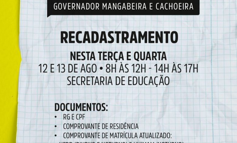 A lista dos estudantes recadastrados será divulgada a partir do dia 15 de agosto de 2025.