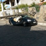 Morador do local, José Renato se assustou com a cena. “Eu estava na rua e moro aqui, quando fui entrar me orientaram a não entrar, porque havia um poste caído. A imagem assusta, nunca vi uma imagem do tipo, não sou avaliador de sinistro, mas avalio que o carro teve perda total”, disse.