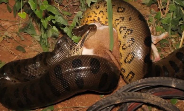 Uma sucuri de aproximadamente seis metros de comprimento matou um cachorro no Bairro Cristo Rei, em Várzea Grande, região metropolitana de Cuiabá, na noite da quinta-feira (30).