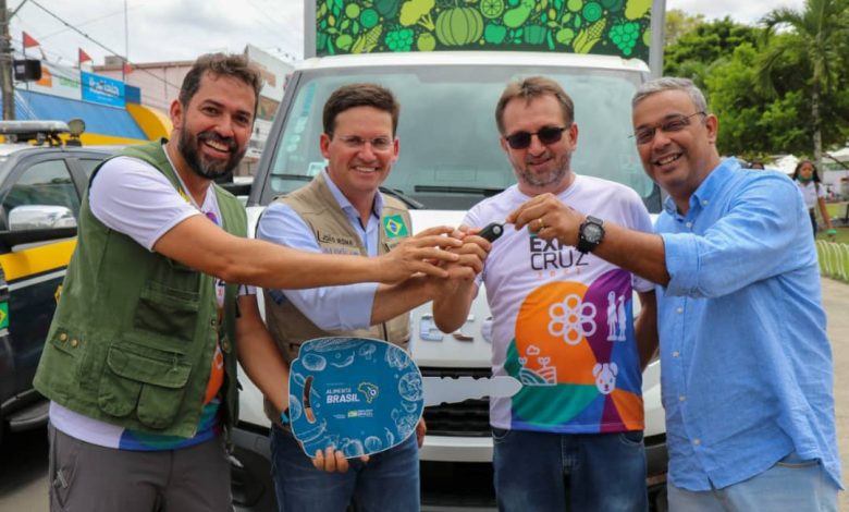 Por meio da ação Isso É Cidadania, João Roma também realizou a entrega de 500 cestas de alimentos para famílias carentes e 8 caminhões do programa Alimenta Brasil para municípios da Bahia. Além de Cruz das almas, os caminhões baús isotérmicos entregues servirão ao transporte de alimentos adquiridos da agricultura familiar em Botuporã, Caetité, Curaçá, Tanquinho, Teofilândia, Ribeira do Pombal e Itacaré.
