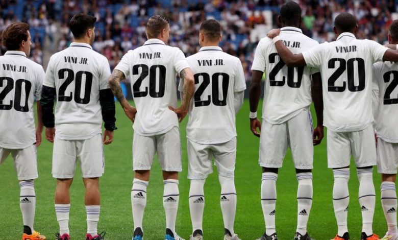 Uma das demonstrações de apoio veio do elenco do Real Madrid. Os jogadores da equipe Merengue, titulares e reservas, entraram em campo com a camisa de número 20 de Vinicius Júnior.