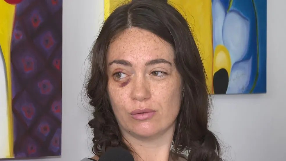 “Hoje minha cabeça ainda dói muito, minha costela também está bastante dolorida, meu corpo no geral. [No dia do crime] A gente chegou no bar para encontrar o amigo dele, que tinha chegado de viagem. Estávamos conversando normal, e ele começou a ficar com ciúmes do nada. Ciúmes no geral, porque estávamos em uma conversa em galera, não foi uma conversa só entre eu e o amigo dele para causar isso”.